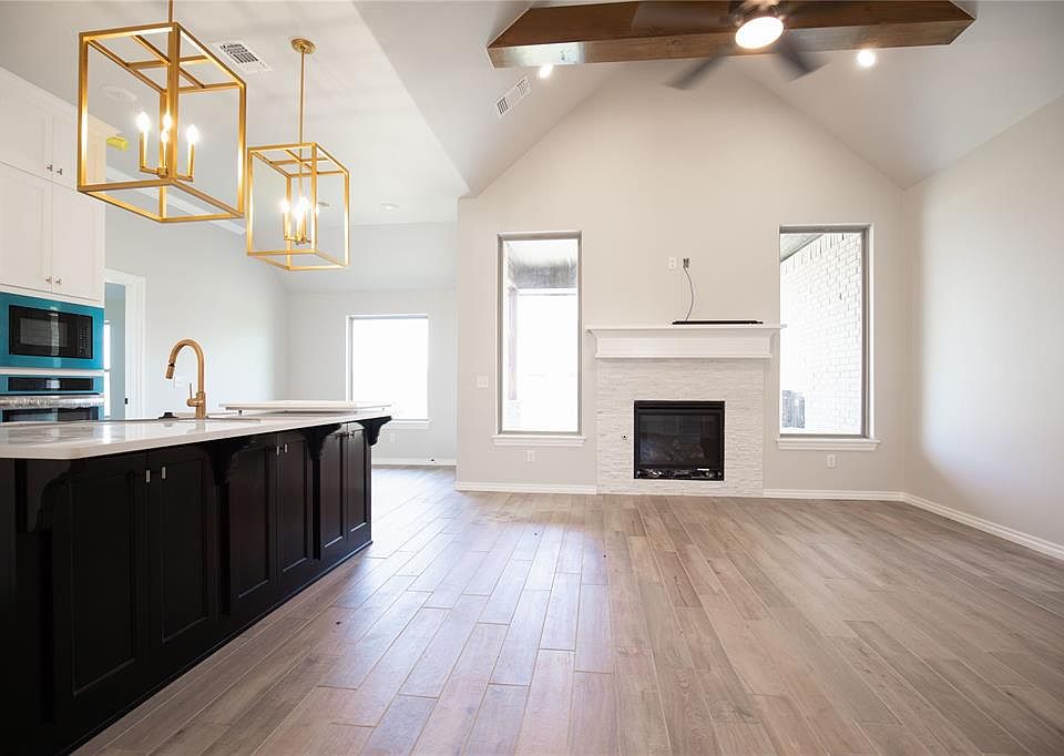 This Sage Bonus Room 1 floor plan includes 2,550 Sqft of total living space, which includes 2,300 Sqft of indoor living space & 250 Sqft of outdoor living space. There's also a 625 Sq Ft, three car garage with carriage doors and a storm shelter installed. This home offers 4 bedrooms, 3 full bathrooms, 2 covered patios, & a bonus room! The living room features an outstanding cathedral ceiling with a crows feet detail, a beautiful fireplace with our stacked stone surround detail, large windows, & wood-look tile. The kitchen has decorative tile backsplash, stainless steel built-in appliances, well-crafted cabinets to the ceiling, 3 CM countertops, a corner pantry, & a large center island. The primary suite boasts an extraordinary, sloped ceiling detail with a ceiling fan, sizeable windows, and our cozy carpet finish. The attached spa-like primary bath features a dual sink vanity, a European walk-in shower, a Jetta Whirlpool tub, a private water closet, and an incredible walk-in closet that will leave you absolutely speechless. The covered back patio offers a wood burning fireplace, a TV hookup, & a gas line. This home also features healthy home technology, a fresh air ventilation system, a tankless water heater, & so much more!