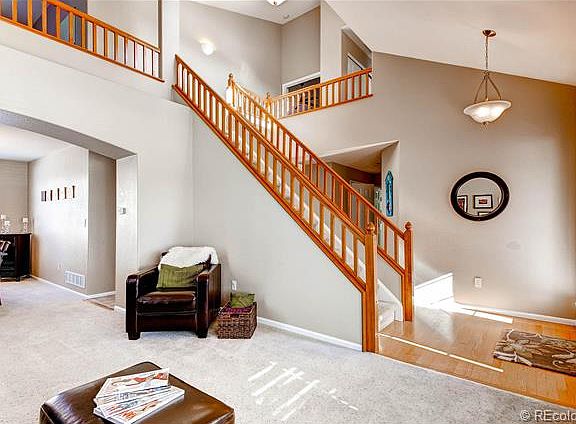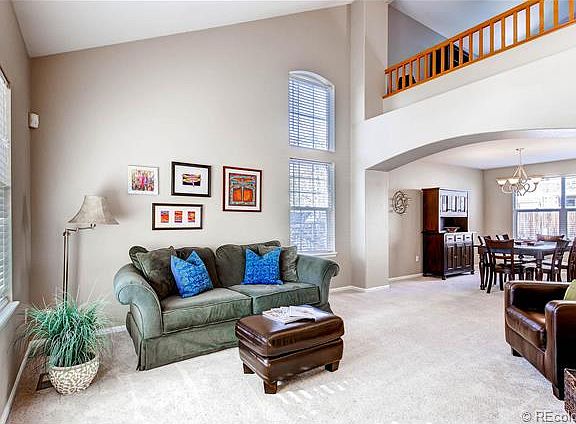 Light, Bright, and Airy. Open floor plan great for entertaining with large kitchen nook, 2 bar seating areas, easy flow dining room and separate formal living room. Upstairs Loft area for office or playroom. Nicely finished basement with bathroom. Large Backyard. High performing Cherry Creek Schools. Neighborhood Pool. Several parks within walking distance. 5 minutes to Trails Recreation Center.