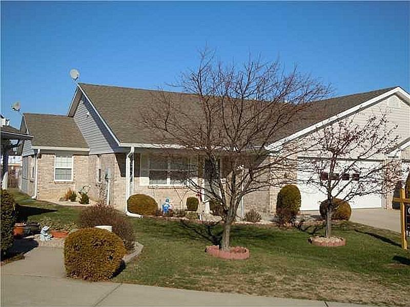One owner home in impeccable condition. Largest home in community with bump outs to enlarge rooms. Large living room plus separate den/office. Upgraded kitchen cabinets and laminate flooring. All appliances stay including washer, dryer, and Kinetico water softener. Separate dining room. Both bedrooms have huge walk-in closets. Master bath has shower with seat. Three season porch, well built wood deck with retractable awning. Home is at the end of the cul-de-sac. Possession at closing.