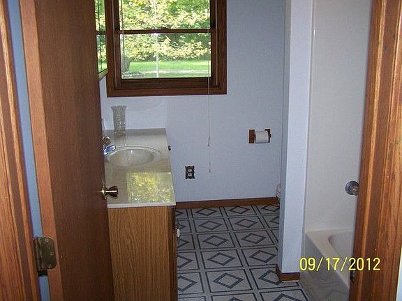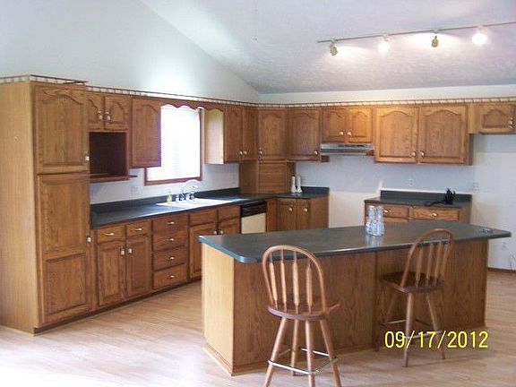 Ranch style home on 2 acres. Home has a side and rear porch. Whirlpool tub and double sinks in the master bedroom. Immediate possession. 3 bay workshop (formerly a bodyshop) with concrete floor and office. West Central schools.