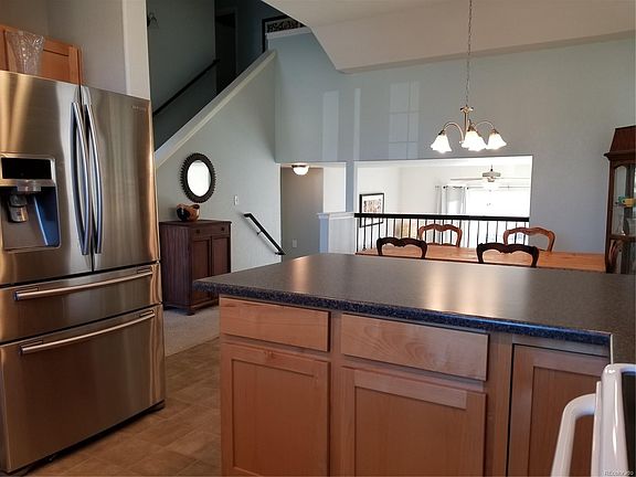 Quiet neighborhood in an excellent location. Within 1 mile from grocery & dinning, only 2 +/- miles to I25 & St. Vrain State Park. The Main level offers an eat in kitchen & dinning room with high vaulted ceilings. Included: Stainless steel Samsung refrigerator, microwave, clothes washer & dryer. Large family room connects to the back yard with over 10 trees creating a wealth of shade & privacy. Enjoy the view of a lake & farm from the kitchen window. Whole house humidifier with UV light & A/C.