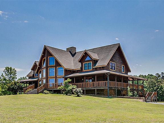 Absolutely stunning log home situated on 27+ picturesque acres! Spacious open floor plan features hardwoods throughout main & second floor, exposed beams & spectacular great room w/30 ft vaulted ceiling, tons of natural light & a beautiful stone double sided fireplace. Fantastic kitchen features granite counters, an eat at island & all appliances remaining, including Viking gas range & built-in GE Monogram refrigerator! Fabulous primary suite w/walk-in closet, french doors leading to side porch, bath featuring double vanity w/granite counter, jetted tub & oversized shower! Great space upstairs offers relaxing loft area w/FP, high ceilings, 4 additional bedrooms & 2 full baths. Finished basement is perfect for entertaining w/huge rec room w/fireplace, bonus room, office, full bath & sauna! Fabulous wrap around covered porch & stamped concrete patio are great spaces for relaxing! 42X24 work shop w/garage door. Beautiful views & super convenient location!