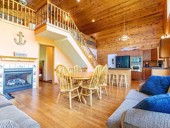 Beautiful 4 bed cabin sitting on the point with 2.3 acres on Lake Raddison!! This year-round cabin will not disappoint with its beautiful views and 660 ft. of sandy lake front with crystal clear water!! Enjoy premium fishing on your 203 acre lake!! After fishing, enjoy entertaining friends and family on your massive wrap around deck!! If you need room for guests, then this is the perfect setup with the upper loft that has bunk beds and 2 lower-level bedrooms with a walk out basement. A true turn key must see!!