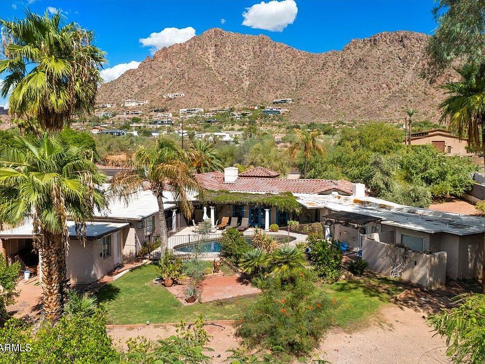 Revel in breathtaking panoramic mountain vistas from this stunning residence situated in an optimal setting in the heart of town. The spacious open floor plan encompasses four bedrooms and four bathrooms, which include a separate guest casita, all spanning across a generous 3,840 square feet. The open layout bathes the interior in natural light and flows seamlessly, creating a highly functional space. The well-appointed kitchen, along with most of the rooms in the house, has been thoughtfully updated with new cabinetry, quartz countertops, upgraded lighting, stone and brick accents, wood beams, and fresh flooring. A striking stone fireplace serves as the centerpiece of the inviting family room, while an additional fireplace graces the living room. Both formal and informal dining areas provide ample options for hosting gatherings. The primary suite is a highlight, featuring a private den that offers a tranquil retreat. The separate guest casita boasts its own entrance, and the lushly landscaped grounds encompass covered and open leisure and entertainment areas, mature landscaping, and a splendid pool. Situated on a spacious lot with awe-inspiring views of Camelback Mountain, the possibilities for this property are limitless. Whether you choose to live in it or transform it, this presents a superb opportunity within a fantastic location.