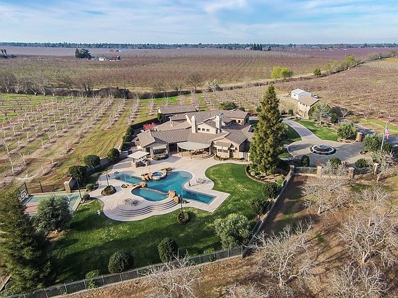 Please contact Phil Rodriguez to view this home: (916) 934-3266 Tailored & Pristine yet Edgy & Compelling express the Style & Character of this Delicious Country Escape. Situated on 19.76 acres of walnuts & cherries & farther nestled in a gated, fenced & landscape area that looks like an artist’s rendering of the most relaxing but fun filled resort. Home features & materials were thoughtfully researched & selected like extraordinary handpicked granite, slate, travertine & cement counters plus warm Brazilian cherry & brawny Mexican tile flooring. Downstairs plan includes large formal & informal spaces, custom wine room with cooling equipment & space for over 800 bottles, a downstairs master suite with distinctive his & her bathrooms & guest quarters with private patio. Upstairs has CEO office with balcony, bedrooms, high-tech game room, hobby room & space to use for the desires of your heart.