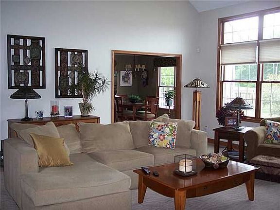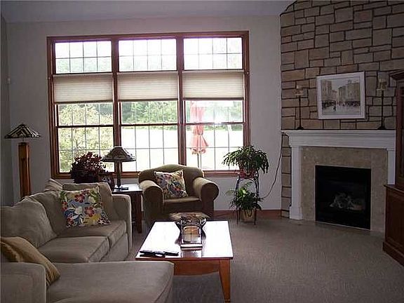 Great detail & quality throughout, on Eagles Landing, fairway 12, panoramic views. Open floor plan, Harrison wood floors, kit, entry, galley, ceramic back splash&hard surface counter tops, Kitchen Aid SS appl. Master suite whirlpool & sep. shower vaulted ceilings in gr rm/stone fireplace open stairway to divided partially fin basement, stamped concrete patio fire pit. New roof 2011 transfer warr.