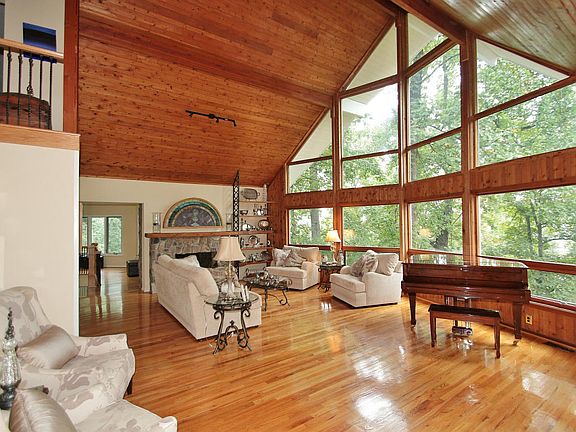 Beautiful Red Cedar Contemporary Home!Vaulted Ceiling Great Room w/Stone Fireplace & amazing wall of windows.Remodeled Kit w/Cherry Cabinets & Granite Counters.From Kit step out onto Deck w/Heated Inground Pool & Hot Tub,Tiki Bar, Sauna, 2 BR on Entry Level-one is En-Suite style.Upper Level feat Master Suite w/ Steam Shower, Private Balcony.LL has 2nd Kitchen.Park-like Grounds w/Pond & Gazebo