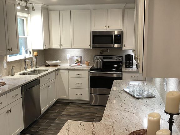 FABULOUS RENOVATION! GREAT Location! 2 lg Bedrooms, 2 Baths, Living rm w/Electric fireplace & built-in's, Open Floor Plan, New Kitchen wi/Ganite Counter Tops & Stainless Steel Appliances, Stack Washer & Dryer, Hardwood & Title Floors Throughout. Great house for entertaining back Deck with fireplace & TV. Lot's of Parking! Pet's allowed with approval and pet fees.