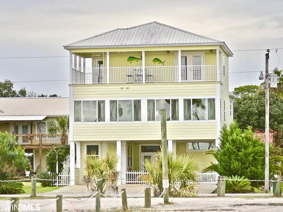 Enjoy the ultimate ORANGE BEACH LIFE with HARBOR VIEWS! Located in the Orange Beach School District. Water EVERYWHERE with this gorgeous DOUBLE DECKER PORCH to soak in the VIEWS! Located in the HEART of Orange Beach. This location is UNMATCHED in popular Bear Point, and is perfect for entertaining. Walk DIRECLY across to the marina where you can fish, boat, and enjoy the waterfront park. ENJOY the unique 900 Spuare Foot ground floor area with extra kitchen and lounging area. ROOMY 3 bedroom raised beach home with open living and dining opening up to private screened porch on main second level! Well appointed kitchen with all appliances and laundry. Sprawling master with en suite and giant all seasons porch facing water! Top level features two roomy guest rooms with shared bath and GIANT PORCH for ulimate relaxing. Pets considered! Inquire NOW and start living the Orange Beach life you have been dreaming of.
