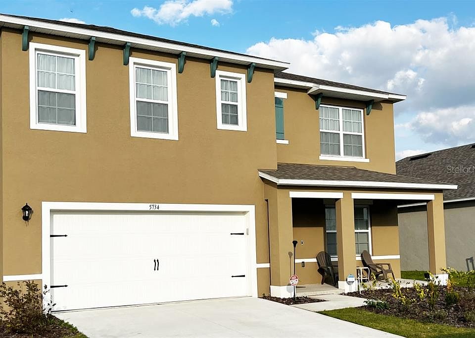 Feel like you're on vacation every day with resort-style amenities at the Riverstone Community in Lakeland near Tampa and Walt Disney World®. The 2022 construction is a two-story open floor plan offering five bedrooms and three full-bath concrete blocks. The single-family home sits on a spacious premium lot with a large backyard and a 6-foot privacy fence in a desirable location in Lakeland, Florida. Enjoy the summer with two swimming pools, outdoor fitness stations, walking nature trails, dog park, a tot lot, and a playfield. The home is near restaurants and shopping centers featuring fiber optic internet service, an open loft upstairs, a two-car garage, stainless steel appliances, a kitchen island, a formal dining room, a walk-in pantry, a dedicated laundry room, and a separate breakfast nook with granite counters, ceramic tile on the first floor, and premium waterproof PVC flooring on the 2nd floor.