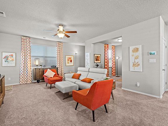 Prime Location with Stunning Views! Situated across from Enchanted Hills Park, this former D.R. Horton model home offers both style and functionality. Positioned on a west-facing lot, it provides breathtaking sunrise and sunset views. This three-bedroom, two-bathroom home also features a flex room, perfect as a fourth bedroom, home office, or study. Designed for modern living, the home includes custom window treatments, smart home technology, and high-end appliances, including a refrigerator, washer, and dryer. The front and back yards are fully landscaped with an irrigation system, while the garage and covered patio feature durable epoxy-coated flooring for a polished, long-lasting finish. Don't miss this exceptional opportunity--schedule your private showing today!