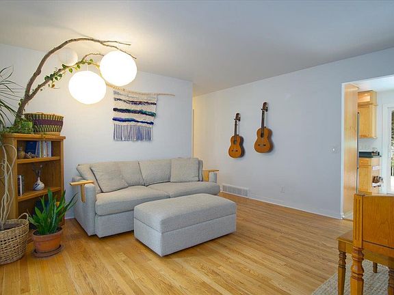 Whether you are a first-time buyer or an experienced homeowner, you will appreciate the level of care given during the sellers' ownership of this wonderful home. Lovely full bathroom remodel offers a serene space; beautifully refinished hardwood floors are classic, plus newer cork in kitchen for cooking (and back!) comfort; newer Andersen slider leads to large deck for relaxation & fun; modern lighting, updated trim & insulation around windows - this seller has done the work for you to enjoy! Step into the amazing fenced backyard: retrieve eggs for breakfast from your own chicken coop, reap the harvest from raised beds, & play games. Oversized 1-car garage, sweet bonus space in basement w/full bath - perfect for guests! Close to everything - dog park, bike trails, shopping! Welcome home!