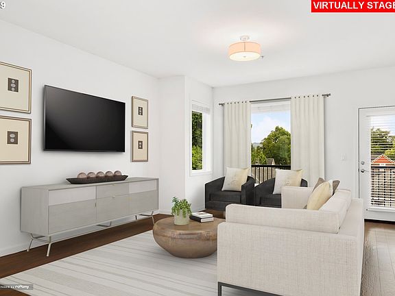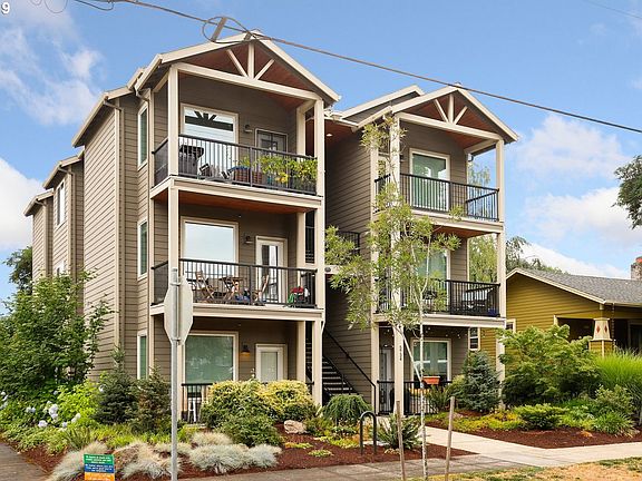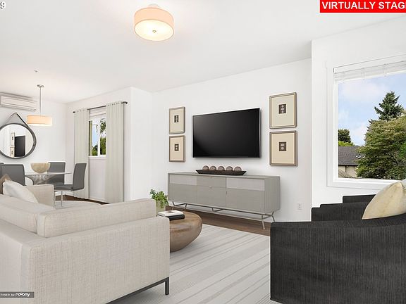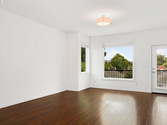 Convenient to New Seasons, Mississippi, Williams & Alberta streets, this gorgeous top corner unit, bathed in natural light, boasts an open concept living room/dining room/kitchen & west-facing, covered balcony with territorial & sunset views. Kitchen has quartz counters, SS appliances. Quiet manuf. wood flooring, light dimmers, closet built-ins. 3 mini-splits for heat & A/C in dining room & bedrooms. Walk Score 87, Bike Score 91.