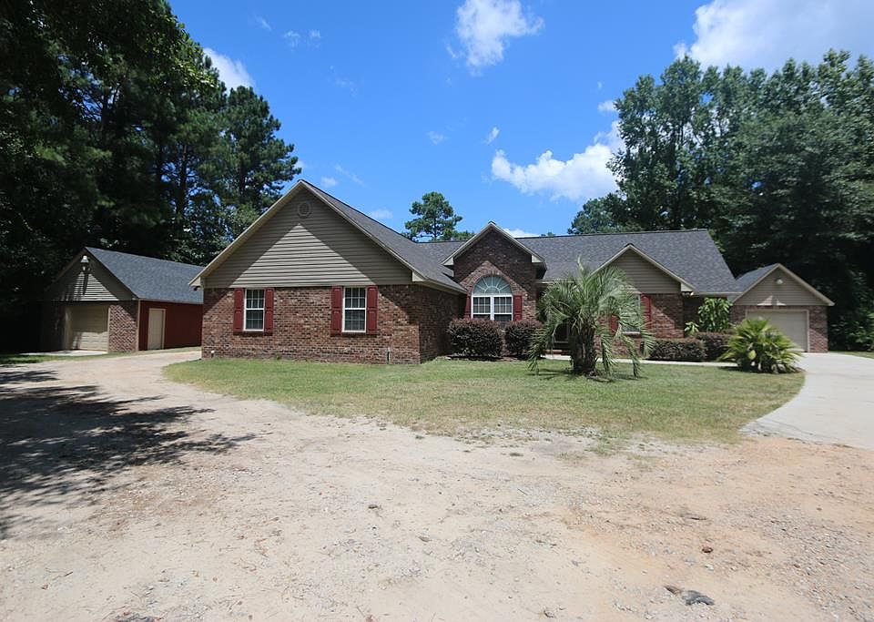2.8 ACRES, custom home with 2 shops, pond, outside kitchen w/2 cabanas & fenced. Granite, stainless appliances and tile floor in the kitchen with custom cabinets.Formal dining room w/modified ceiling and dressed with heavy crown molding & wainscoting.Living room w/vaulted ceiling, luxury vinyl plank flooring and custom entertainment center.This home definitely has a great room and provides lots of entertainment in the 26.5 x 24.9 great room with a vaulted ceiling, a half bath & side door. Split three bedroom plan w/hall bath between the two bedrooms. The master has a tray ceiling, a private office (11.8 x 7.8) with cabinets and a deluxe master bath w/jetted tub, walk in shower & toilet room. Detached 20 x 44 garage shop, a lean-to & 14 x 14 detached shop.Located between Paxville & Manning.