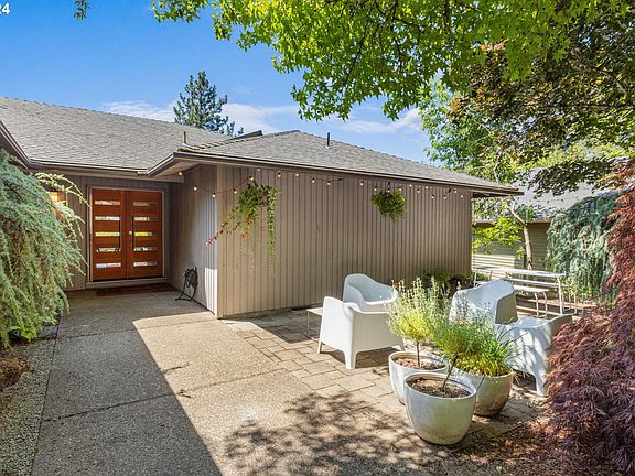 Priced to sell! Enjoy the view of the treetops while living minutes from downtown in the desirable Bridlemile neighborhood in the West Hills. This mid-century, well-maintained gem on the hill is perfect for those who love to entertain indoors and outdoors. Huge windows throughout the main floor and a 275 sq ft elevated and covered deck surround you with views of the neighborhood forest. A patio in the front offers a place to gather around a fire pit amid the fall colors. The private cul de sac and no through traffic makes the entire street a safe place for playing! Double entry doors welcome you to a main level that has just under 2000 sq ft including large family and living rooms, each with a fireplace and views, large primary ensuite with a newly remodeled bathroom, recently remodeled (just over 2 years ago) laundry room, second bedroom and full bath. The modern kitchen with wet bar opens to the family room with a wood burning fireplace and outdoor covered deck for year round entertaining. Hardwood floors throughout the main floor, recently updated carpet in the bedrooms and downstairs in the daylight basement that includes two spacious bedrooms, third full bath and a large family room with sliding patio doors to a covered patio and cornhole court. Low maintenance landscaping includes established trees and privacy shrubs. Newer (four years old) windows in all bedrooms with roller shades throughout. The deck and patio were new in 2019. Fenced dog run. Central forced air heat and A/C. Listing agent is related to the seller.