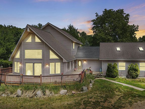 Experience the Ultimate ''Up North'' Retreat on 10 Wooded Acres...Prepared to be awed as you enter this stunning 4,947 sq. ft. home, a true masterpiece of Up North living. This palatial residence offers a perfect blend of space, luxury, and tranquility, all nestled on 10 private, wooded acres. The heart of the home is an open-concept living space with a gourmet, island kitchen, creating an ideal setting for gathering with family and friends. The main floor master suite is a private sanctuary, featuring an en-suite bathroom and exclusive decking with breathtaking views. Three additional, generously proportioned bedrooms and a total of 3.5 baths provide ample space for everyone. The exterior of the property is just as impressive as the interior. A multi-tiered decking system provides the ultimate setting for outdoor entertaining while you soak in the peaceful countryside views. The property also features a landscaped garden area, a two-car garage, and a 30x40 pole barn, perfect for storing all your recreational toys for every season. Located in a desirable area with a countryside view and surrounded by natural beauty, this home is the epitome of a family retreat. Don't miss this opportunity to own a piece of paradise in Brethren, Michigan.