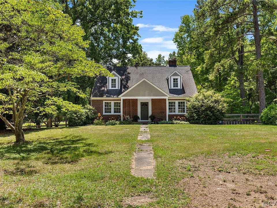 Brick cape on 7 acres just 1 mile from 64! Hardwood floors, original bead board, vinyl replacement windows. 2 fireplaces. Gorgeous kitchen renovation is truly the heart of the home featuring stainless appliances including a brand new range, striking acacia butcher block countertops, tile backsplash, island that conveys, huge eat-in area. Warm family room with hardwood floors and fireplace. 2 bedrooms, a renovated full bath and a rear entry mudroom complete the first level. Upstairs you'll find 3 large bedrooms w hardwood floors. Huge unfinished basement w 2nd fireplace, garage area, workshop. 2nd bath rough in. Brand new Mitsubishi mini split system upstairs, HVAC on main level. Water heater replaced 2021. New deck. New fencing. Chicken coop. All on 7 acres w a creek, tree stand that conveys and food plot. Just 1 mile from 64, makes Richmond or Charlottesville easily accessible. High speed internet!