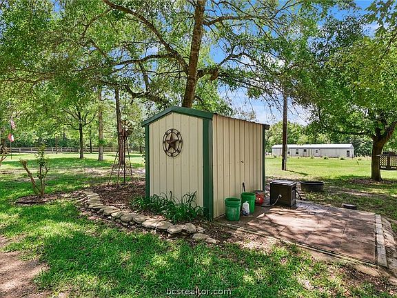 If quiet country living is what you're dreaming of, look no further! This 3 BD 2 BA with an additional flex-room is quietly situated amongst over 4 Acres of towering trees and offers plenty of hobby space that is sure to please! Excellent opportunity for a weekend retreat or your next primary residence! 25' x 50' workshop with built in work benches, overhead storage and shelving, 2 sliding doors, washer / dryer connections and 220 wiring. Two RV hookups and covered motorhome/RV storage--both 50 amp w/ additional septic line hookups on one of the RV stations. Beautiful fenced garden area with potting shed and composting bins. Horse or tractor shed (12'x20'), cross fencing to allow for livestock or 4H/FFA projects. Home is 3 BD 2 BA with additional flex room (office or gym or home school room), a craft room with cabinetry/desk, kitchen will full length buffet cabinetry, gas double oven (convection) and stainless appliances. Wood laminate flooring throughout the home. Property is perimeter fenced with 4" smooth wiring fencing. Water is provided by well (170' deep approx) and aerobic septic system. 5 year old metal roof. HUGE trees, crepe myrtle lined driveway, Texas lilacs line the side property fence line. Paved road frontage and Navasota School District.