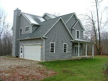 BACK ON THE MARKET Nearly new 2 story nestled on 10 fully wooded acres. Ceramic tile floors in 2 story front foyer,kitchen & baths. Huge(41x15)Great Room w/fireplace, kitchen with island & solid surface counters, closet pantry. 12 course high basement ready to finish, 90Plus propane furnace. Master suite w/whirlpool tub, two closets, trey ceiling. This property has some water damage from a busted bathroom pipe, needs drywall work and carpet. (Priced below cost, sale subject to bank approval)