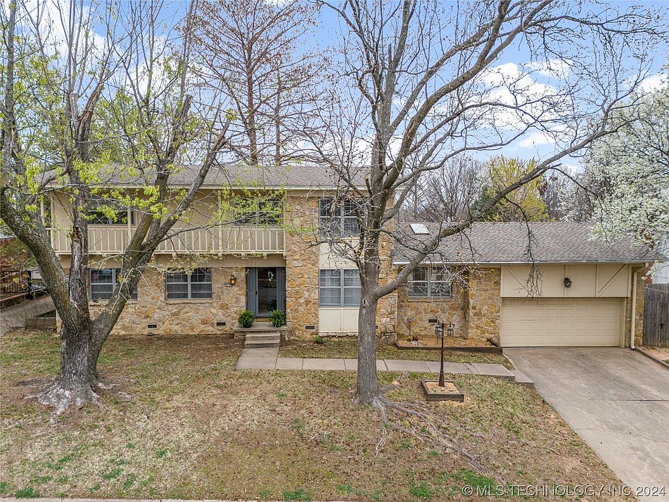 Charming five-bedroom split-level residence featuring a beautiful heated inground POOL! The fully fenced yard boasts a covered living area, expansive deck, shade trees, and a gunite diving pool with sundeck and bubblers. The main floor welcomes you with a foyer open to the living room, formal dining room, and a spacious eat-in kitchen. Descend a short set of steps to the basement level, offering a generous den with a cozy stone wood-burning fireplace, a half bathroom, a versatile game/hobby room, and convenient laundry room; back patio and yard access. The second floor hosts a sizable primary suite (with ensuite bathroom), a full bathroom, and a second bedroom, while the third floor presents three additional bedrooms and another full bathroom. Enjoy stylish updates and built-in storage solutions throughout. The kitchen, illuminated by soft natural light from the skylight, opens to the back deck—perfect for seamless entertaining. Conveniently located near St Francis Hospital, LaFortune Park, dining, retail, and with quick access to I-44. An ideal blend of comfort and convenience! Coming soon - no showings or offers until March 8.