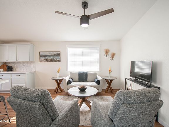 Renovated 2 bed, 2 bath manufactured home in a gated 55+ active adult community and you own your land. This home features an open floor plan with 2 master suites, and an office/craftroom. Beuatiful modern design with an airy feel. This home is situated on a great lot with a lot of space to enjoy the Arizona winters, 3 citrus trees in back, extra parking and a nice size storage room. Enjoy resort style community amenities including heated pool, hot tub, pickleball, tennis, shuffleboard, clubhouse, library, fitness center, and billiards. With its convenient East Valley location near shopping, dining, and healthcare, close to the 202 to get around the valley. This move-in ready home combines comfort, security, and resort-style living.