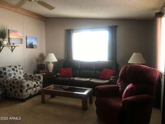 Very nice 55 plus gated community, you own the land!! 2 bedroom 2 bath home sits on a corner lot just down from the club house and pool. This home has been very well maintained and is fully furnished. It would be a great home for a winter visitor or a year round home. Located close to the 202 Red Mountain Freeway with easy access to airports. The area offers many golf courses, restaurants, shopping and hiking trails.