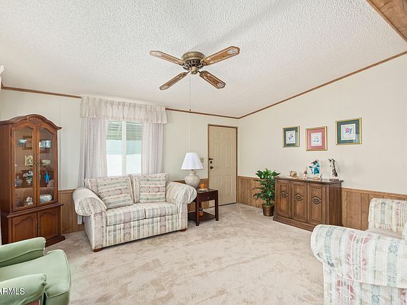 Discover the charm of this furnished 2-bed, 2-bath manufactured home in the 55+ gated Community of The Wells! Sits on a corner lot displaying a low-care landscape and a carport parking. You'll love the perfectly flowing living & dining room tons of natural light! The kitchen offers built-in appliances and ample wood cabinetry w/crown molding. Further enhancing the inviting ambiance are the vaulted ceilings and soft carpet & tile flooring t/out. Main bedroom has a walk-in closet & a private bathroom. Laundry room with cabinetry. Enjoy relaxing in your screened-in patio. Don't forget the Community amenities including a clubhouse, pool/spa, fitness center, sports courts, & more. Close to shopping, restaurants, & golf courses. Welcome home