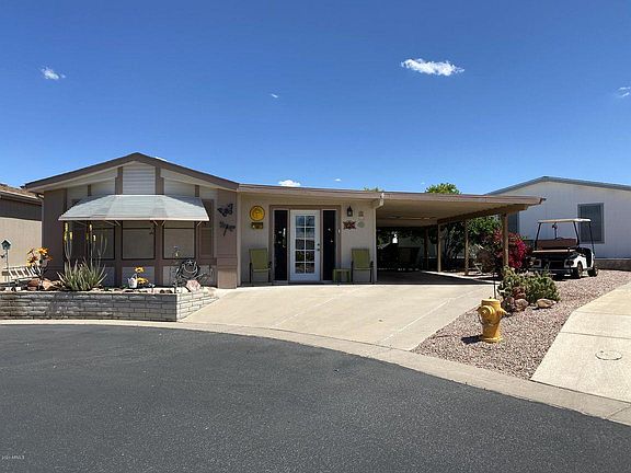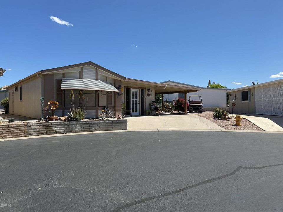 Nicely upgraded furnished home sits on a large corner lot that faces West so you can enjoy the beautiful Arizona sunset. Great outdoor area for entertaining. Gated 55 plus community with all the amenities. This home would be great for year round or winter visitor. Home is affixed to the land and you own your lot. Near airport, freeways, golfing shopping and hospitals.