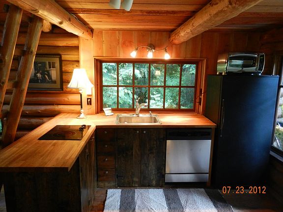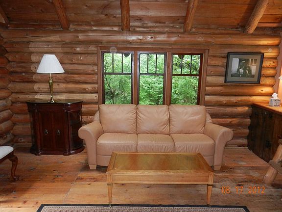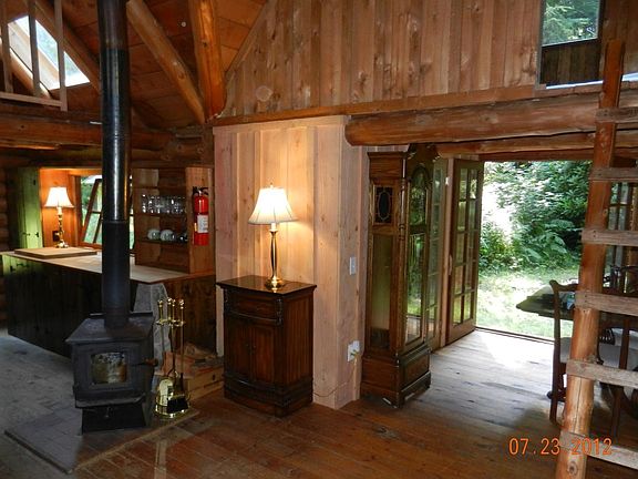 Custom log cabin on 10 private acres. Fully furnished, two open lofts and new bathroom and kitchen.