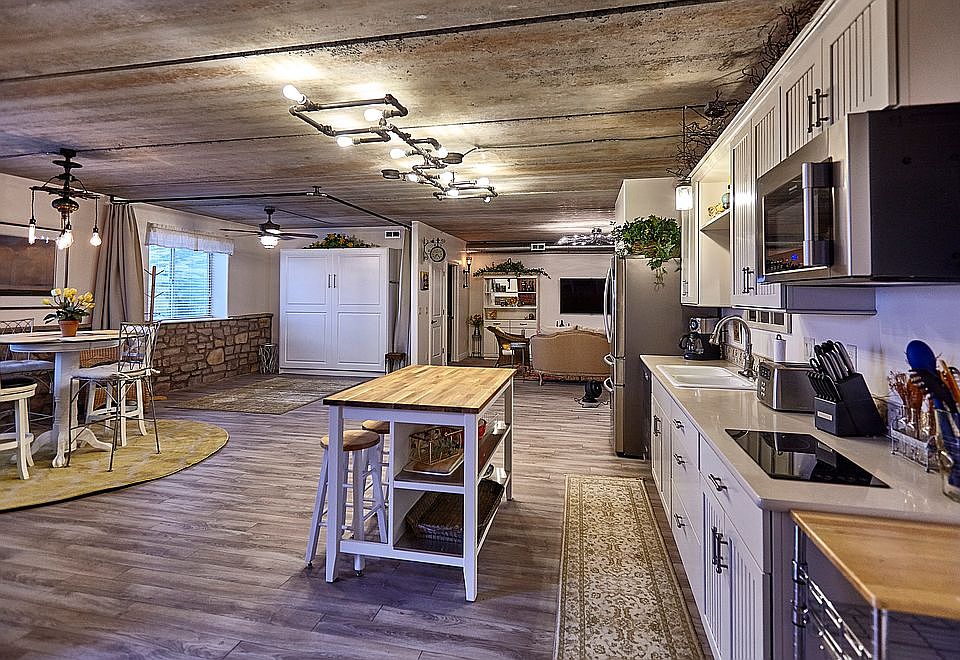 Home has 3 areas. Main level Master Living area, Lower Level Walkout with Own entrance, 4 bedrooms, 2 full baths, Kitchen, Living area, Large dining area for 12, and game room (2500sqft). 3rd, Under garage (1100 sqft.) modern studio.sleeps 4 with won kitchen, 3/4 bath, treadmill room, and laundry facilities, with own entrance and large outside gazebo under the Italian tower observatory.