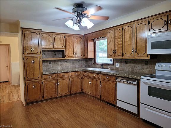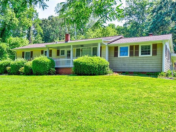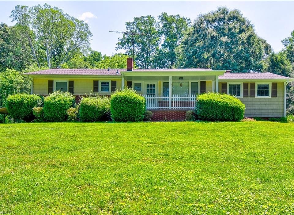 One owner Custom Built Home in Pfafftown on 3/4 acre, Covered Front Porch, Spacious Kitchen with plenty of cabinets, Granite Counters, and breakfast area too, Formal Living room just inside front door (owner used as formal dining room), Huge Den with Wood Burning fireplace (cover over FP currently, but can be removed - owner had decorative electric FP in front of it), Primary bedroom with adjoining bathroom that was recently updated with walk in seated shower, Stackable Washer & Dryer on Main (with additional laundry hookups in basement), Small finished room in basement, Basement garage with new garage door, 2 car attached carport, Workshop/Building with RV Parking area, Two driveways including LL Driveway to access building and basement garage and main level driveway to 2 car carport.. New water heater, Public Water & Well