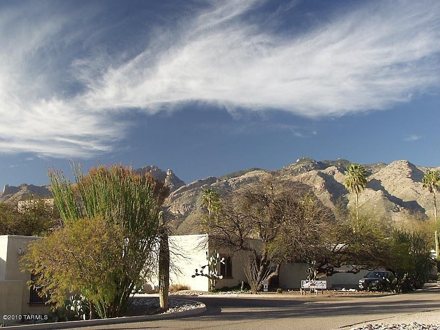 For more information on this property, contact the Listing Agent, Maury Johnson at (520) 299-9823 or mauryj@dakotacom.net. Foothills masonry retreat, nestled in an intimate enclave of 21 homes called Sunrise Pointe Townhomes, is tucked away behind a hill and bordering a small wash for extra privacy. This private neighborhood of Mediterranean mini villas holds a special appeal for its longtime residents. Bright open floor plan, large living room open to dining ell. Split BR plan. Spacious master suite with private skylit bath, desk area and walk in closet. 2nd guest BR w/adjacent bath. Cool shaded front porch, a short walk to pool. Rear walled yard with grapefruit tree. Sought after in the heart of the foothills, just minutes from Swan and Sunrise shopping and restaurants.