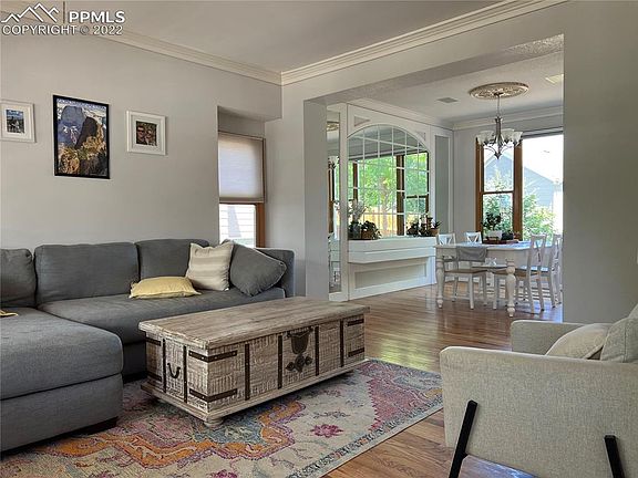 Exquisite 2-story home located in the pristinely maintained Dakota Ridge neighborhood. Beautiful landscaping, stone accents, an inviting front porch, two car garage, and Pikes Peak view. The soaring ceiling and oversized windows allow for an abundance of natural light throughout the house. The home boasts gleaming hardwood floors throughout the entire main level. The spacious gourmet kitchen has new stainless-steel appliances, an island, and granite countertops. Cozy up in the sitting area and enjoy a warm beverage in front of the fireplace. From the great room and kitchen, you have easy access to the formal dining room. An updated 3/4 bathroom and mudroom/laundry room can also be found on the main level, in addition to a main level bedroom or office. Up the beautiful hardwood staircase you will find a large master bedroom and five-piece bathroom. Three additional bedrooms and a full bathroom provide ample space for you and your family. The unfinished basement provides additional room for storage, a rec room/home theater, or additional bedrooms. Enjoy the new A/C for those toasty Colorado summer days/nights and a new furnace for those cold Colorado winters. The backyard adjoins a community walking trail that provides access to the entirety of the neighborhood. This home has it all! Close to grocery stores, shopping, community parks, biking trails, hikes, hospitals, military bases, and more. Its proximity to the neighborhood parks and access to amenities such as a swimming pool, tennis courts, and playgrounds add to the neighborhood's charm. Lots of room to run and schools are easily accessible. This home provides an incredibly special place to live, a Colorado Springs gem you won’t want to miss!