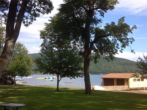 Original Estate house,205` shale beach,enclosed boathouse,magnificent private lakefront lot with southern and eastern lake view, 2 permanent concrete docks,tennis court,tennis house with fireplace,landscaped by Sonnenberg Gardens Japanese gardeners,the most incredible waterfront lot on the lake! Two woodburning fireplaces including large stone fireplace in LR and dining area, decorative fireplace in master bedroom. Huge open patio with stone perimeter,covered patio and glassed in sun porch.This is the home of the 100 year old Seneca Point tennis tournament and known as Millstone Estate! Plantings, specimen trees and shrubs and large shade trees abound. This Estate House awaits your decorator touches, and the grounds await your formal and informal gatherings.