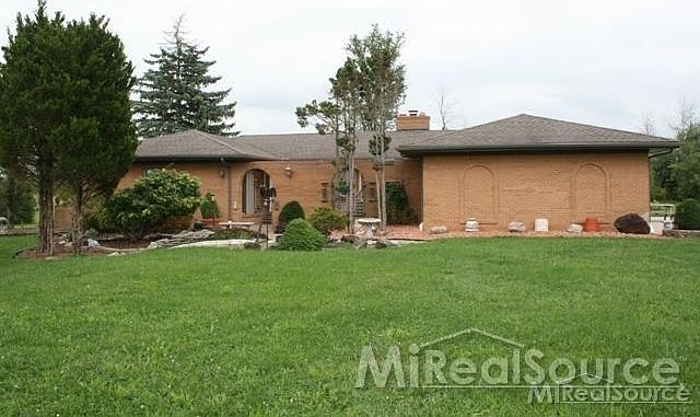 Full Brick Ranch on 5 Acres, Award Wining Utica Schools, Many Updates, Septic 00, Furnace 04, Windows 04, Kitchen Remodeled 04, New Doors & Doorwall 04, Value is in the Location/Land, 4 bdrms, 3 baths, First Flr Laundry, C/A, GFA + Wood Stove, Appliances stay. Hardwood Floors, Slate Foyer, Side turned Garage, Pond Very private setting. All appliances stay. 10 year Warranty on Basement Waterproofing