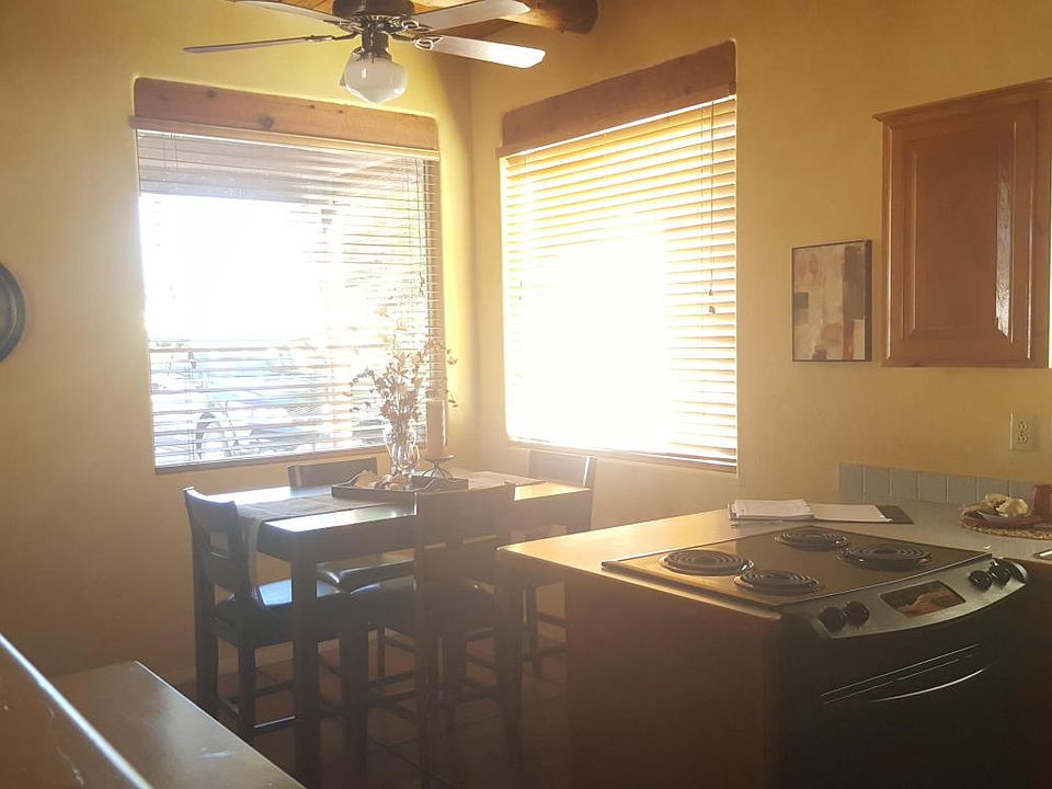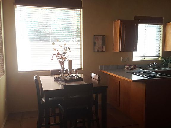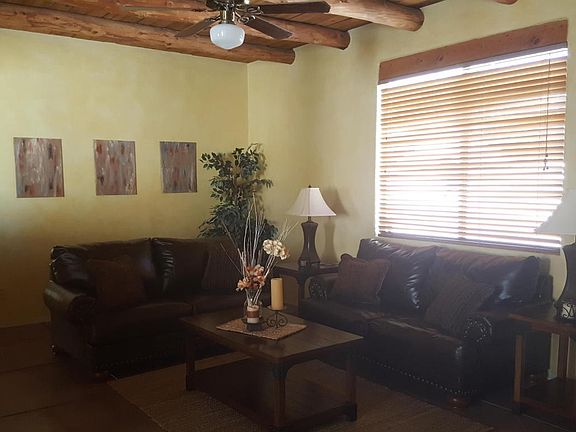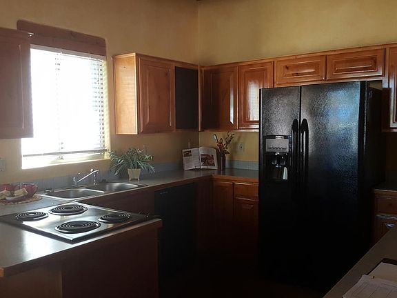 This Sante Fe style home features plank and viga beams, high ceilings, an open floor plan, & polished scored concrete floors throughout including the garage. The home features central vacuum, 5 ceiling fans, wrap around covered patio with pool sized yard, large master walk-in closet, window coverings. The home also includes a finished double car garage with laundry & work area.