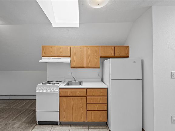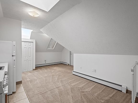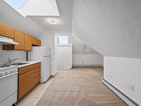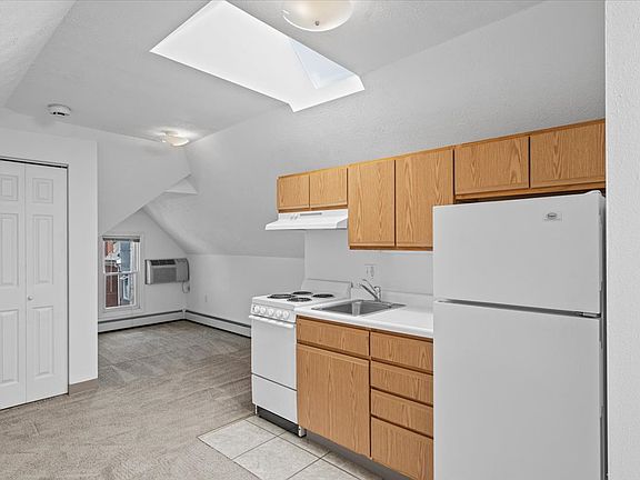 Third-floor apartment located in a renovated house with skylights; modern kitchen with refrigerator and range; wall-to-wall carpet; wall-unit air conditioning; ample storage and coin-operated laundry facilities located in building; off-street parking available for an additional monthly fee. Resident is responsible for electric. Heat is included in the rent.