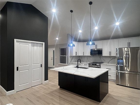 Welcome home to this New Construction Modern Ranch Home Conveniently Located in High Ridge. Schedule a showing to see how perfect this home is and all it has to offer. Just to name a few things: White Baton Siding in peaks, Traditional siding everywhere else. Wide open floor plan, Lots of Windows for that Natural Lighting, Tiled Showers, Double Vanity in Master with Modern Granite, Beautiful Quartz Countertops in the kitchen with full height back splash & SS Appliances. Large Master bedroom with double doors & WIC. LVP Flooring Throughout, Electric Fireplace, Open Staircase, Large Basement with rough in bath for when you’re ready to have your space finished. Walk out basement, saferoom/extra storage area, lots of windows in the basement so pick your perfect spot for additional bedrooms. Updated exterior photos to come after SOD. Low yearly HOA Fees, very little Restrictions! New Construction = Low Maintenance! Get this beauty under contract before it's gone.