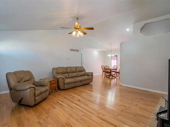 ***PRICE REDUCTION***OPEN HOUSE 9/15 1-3***Welcome home to this super duper clean and well maintained 3 bedroom, 2 bath home. Freshly painted. Roof is 5 years old. Third parking pad on the driveway, 6 spots outside plus 2 inside the garage! Walk into an open floor plan with cathedral ceilings. Beautiful hardwood floors throughout the main level. The eat in kitchen includes a pantry. Master bedroom with master bath has a walk in closet and jets in the tub. Full unfinished basement has tons of storage and waiting for you to finish. The fenced in flat yard backs to woods, 30 acres of common ground. Recently stained deck is great for coffee in the mornings or dinners in the evening. Awesome neighborhood where deer are seen, located away from the city but convenient to shopping, restaurants and schools.