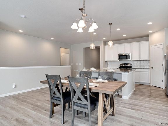 Built in 2020, this beautiful contemporary ranch style home by Taylor Morrison shows like a model. This home boasts a massive 4 car finished garage. Enjoy upgrades throughout the home, including beautiful flooring, a shiplap wall in the family room, stunning kitchen selections with a massive island, stainless steal appliances, gas stove, granite countertops, and white chiffon cabinetry. The home is bright and open with 9 foot ceilings and large windows looking out to open space. The large finished basement offers two additional bedrooms and a new contemporary 3/4 bath. In addition, there is a large storage area and crawl space in the basement. Step outside and enjoy a beautifully landscaped backyard with a paver patio. In addition, there's a dog run with convenient access to a doggy door. The new community of Stone Creek Ranch offers easy access to Parker Road & E-470, the Cherry Creek Trail system, schools, shopping and more. This home is turn-key and priced to sell.