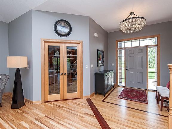 Absolutely breathtaking! Windows galore to take in the views and allow the natural light to warm this wonderful 2-story, open concept home that's situated on a private lot that's just shy of an acre. Hardwood floors-maple and walnut, ceramic tile, granite countertops, stainless steel appliances and an amazing master suite. Other amenities include: Cherry cabinetry, designer lighting, large sauna, in-floor heat in upstairs bathrooms, wet bar with large wine rack, large main floor office with built-in desks and bookshelves and invisible fencing plus many more upgraded features. Option to attend either Rochester or Dover-Eyota schools.