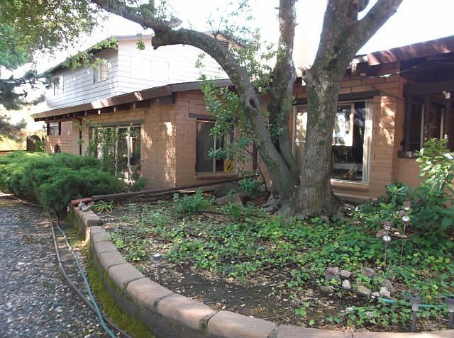CALIFORNIA ADOBE BEAUTY! I'm ready to move into this house myself. Sellers have updated and maintained this property beautifully. Wrought iron remote controlled electronic gate at entrance with circular drive. Covered entry opens to large foyer. The interior of the house has exposed wood beams, red brick floors, sunken living room with unique raised-hearth fireplace. Completely updated kitchen with granite countertops, breakfast bar and new cabinets opens up to family room with slider to the backyard with an in-ground pebbletech pool and cabana. Two bedrooms downstairs (one with a walk-in closet) and updated full bath, dramatic staircase upstairs to huge bedroom suite with bath and area for an office or sewing room or just dressing area. Private upstairs covered deck overlooks the backyard. If this isn't enough there's a 991sf 2 bedroom, 1 bath guest house across the breezeway which could also be used for a home business or office. Property is fenced around the house for pets and partially fenced in other sections of the property. Beautiful rolling property would be nice for horses, year-round pond is a plus too. Huge garage with shop space, built-in brick BBQ in backyard too, once you're here there's no reason to leave!