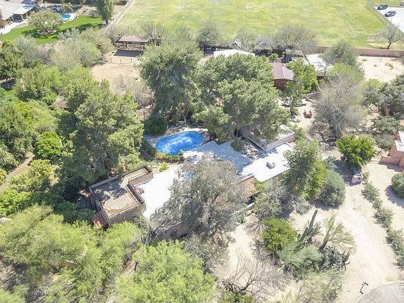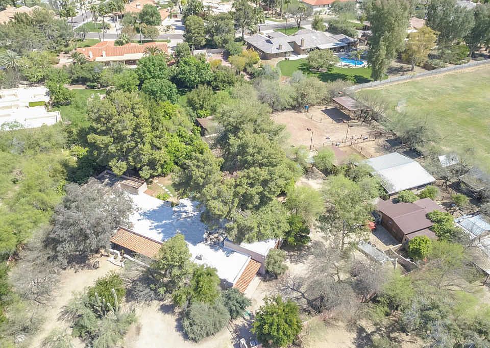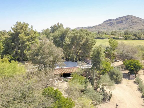 1.54 acres of paradise located in the prestigious town of Paradise Valley. This 4,078 SF block home features 4 beds + office, 3 baths, formal living & dining rooms & spacious kitchen overlooking family room. Interior finishes include wood encased, double pane windows, Saltillo tile flooring, hickory cabinets, stainless steel appliances, corian in kitchen, granite in the bathrooms & wood beams throughout. Additional amenities include diving pool, mature landscape w/ 20+ citrus trees, outdoor fireplace, workshop w/ 220v, 2 storage sheds, a full size barn w/ gorgeous rusted steel double door entrance, hay barn w/ cameras & lights on a timer, tack room, stables w/ fly spray misters, auto water dispensers & hay feeders w/ swing doors, turnouts & an arena w/ lights & sprinklers. Located in the 3 C's school district (Cherokee, Cocopah & Chaparral) & super close to shopping, dining, freeways & more! Truly an amazing & rare Southwestern delight in Paradise Valley!