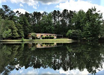 5 ACRES OF PRIVATE WOODED PEACE AND QUIET WITH A 2 ACRE SPRING FED STOCKED POND! THE ENTIRE PROPERTY IS FENCED AND HAS A Large 40 X 50 Pole Building and a small 2 STORY BARN. THERE ALSO IS A 2 CAR CARPORT. THE HOME IS A DOUBLE WIDE AND IS IN GREAT CONDITION, WITH 3 BR 2 BA. AND A HEATED SUNROOM AND CARPORT ADDED ON BY HORTON HOMES. FLOORING IN KITCHEN AND BREAKFAST IS NEW. GREAT AND DINING HAVE LAMINATE FLOORING. COVERED FRONT PORCH AND BACK DECK. ONLY 10 MINUTES TO FT. GORDON.