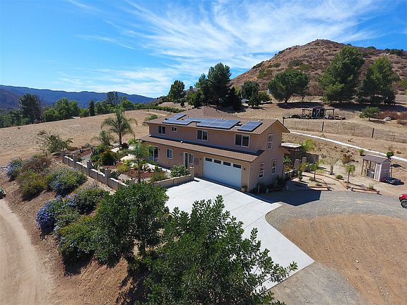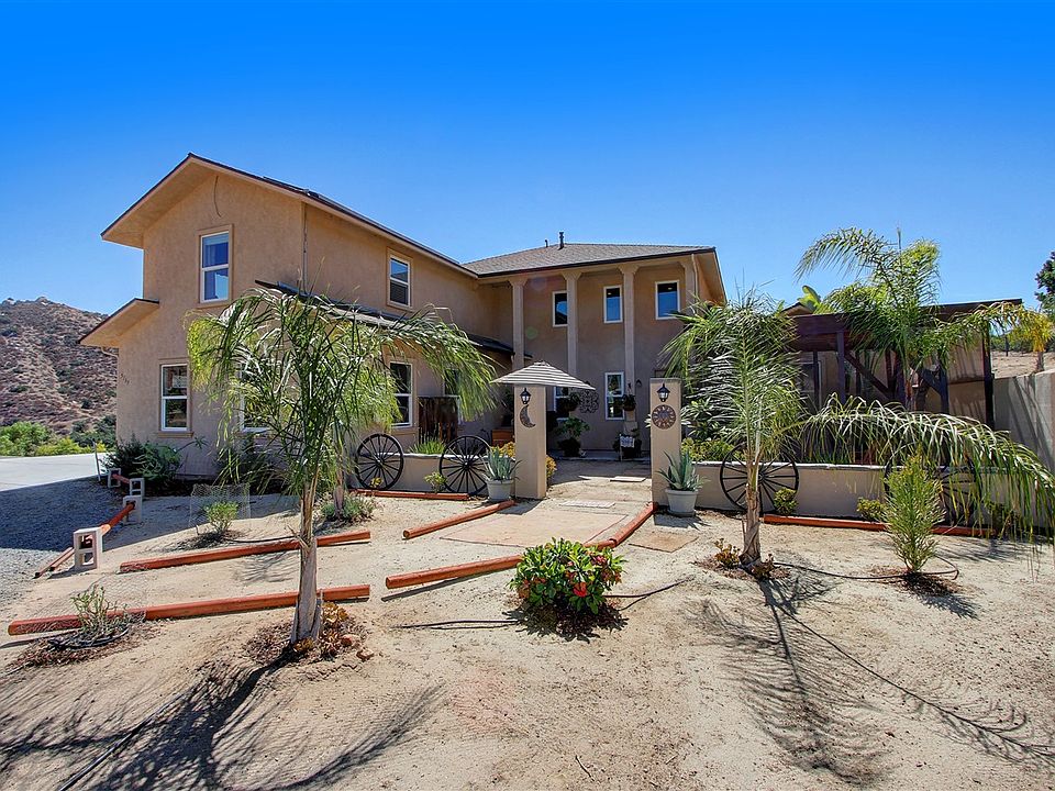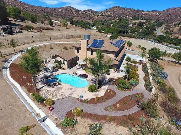 Remarkable, one of a kind horse property! This home truly has it all with an 8-stall barn, 2 chicken coops, horse corral & arena, round pen, riding trail & more! Perfect for the ranch hand or someone who just enjoys space. The interior of the home features dual master beds, Knotty Alder doors, high ceilings, open kitchen & a large bonus room! Beautifully landscaped yard is low maintenance & on a drip system. The large patio with pool, jacuzzi & palm trees make the perfect place for entertaining. MUST SEE! Listed by Lyle and Grace Realty Executives All Area (619) 726-1924