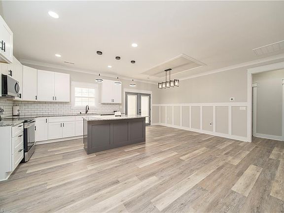Beautiful brand new main level living home! Over 1 Acre!! The large open living room features built in shelving with an electric fireplace, coffered ceiling and lots of lights! Generous trim throughout! The kitchen has extensive cabinets, granite countertops, large island, stainless steel appliances, pendant lights and pantry! Eat in kitchen area opens to the large deck overlooking the property. Large Primary bedroom features a trey ceiling. Primary bathroom has a separate soaking tub, double sinks and shower with ceramic tile backsplash! Large walk in laundry room. 2-car garage with a drop zone coming into house. Schedule your showing today!