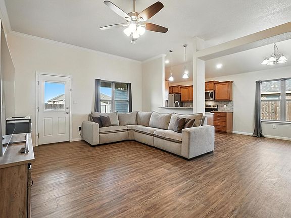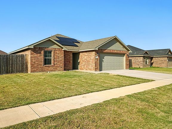 Welcome to this charming 3 bedroom, 2 bathroom T. Johnson Homes build offering 1,282 SQFT of comfortable living space. Perfectly situated just minutes from Dyess AFB, this property combines convenience, functionality, and modern efficiency. Step inside to a bright and inviting layout designed for both everyday living and entertaining. The spacious living room flows seamlessly into the kitchen and dining area, making it easy to gather with family and friends. The kitchen offers plenty of storage and counter space, creating a warm and practical hub of the home. The primary suite features its own private bath, while two additional bedrooms and a full bathroom provide space for family, guests, or a home office. Enjoy outdoor living in the large backyard, complete with a storage shed for tools and equipment. With plenty of room to garden, relax, or play, it’s a versatile space for every season. This home is also equipped with solar panels, providing long-term energy savings and eco-friendly living. Located in Abilene ISD, this property offers quick access to local schools as well as grocery stores, shopping, restaurants, and entertainment. Whether you’re military, first-time buyers, or looking to downsize, this home is an excellent fit. Don’t miss the opportunity to own a well-maintained home with thoughtful features, great location, and energy-efficient benefits. Enjoy peace of mind with seller-paid solar panels at closing! New carpet installed this summer, and the home comes equipped with a fully paid Vivint security system for added comfort and convenience.