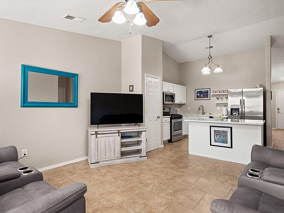 Beautiful 3 Bedroom 2 bath home with gorgeous vaulted ceilings and oversized tile floors in the main living areas. The open kitchen has an island, quartz countertops, and elegant Frigidaire stainless appliances. Both bathrooms are full baths! Enjoy the outdoors with the extended patio with lots of room for seating. Refrigerated air and attached 2 car garage!