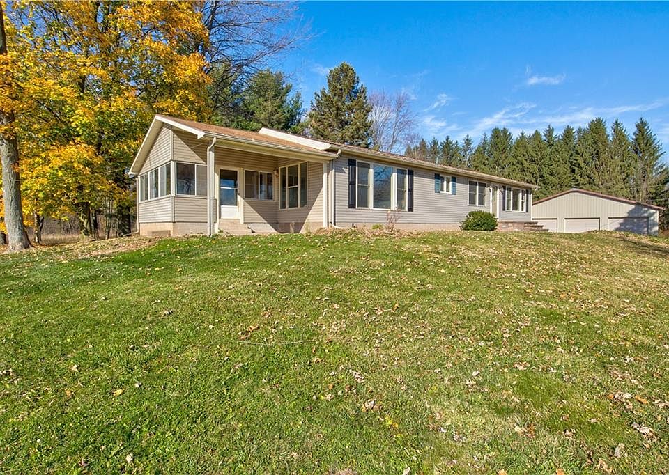 Incredible opportunity to own over 35 acres of prime land in a private serene setting away from the hustle and bustle. Set way back from the road this remodeled 1652sf ranch overlooks a wooded lot and a HUGE pond. This 3 bedroom 1 bath home has been updated from top to bottom. Bright and sunny kitchen with all appliances included. 1st floor laundry. Formal dining room and large living room with fireplace. 3 good sized bedrooms and remodeled full bath. Outside is a large 3 bay outbuilding/garage for all your storage needs. Get ready to kayak, canoe, fish, snowmobile, hunt, hike or whatever your heart desires on this one of a kind oasis!