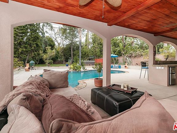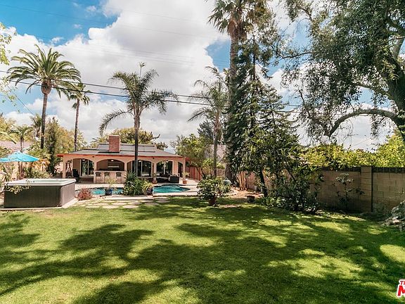 Located within walking distance to the new "Noho West" (under construction), this Valley Village home sits on a 10,425 square foot flat lot. The backyard oasis features a newly replastered blue bottom pool, new hardscape, Pergola, separate spa, patio with outdoor fireplace, island with granite counters, outdoor kitchen equipped with BBQ, & 2 fridges. An open floor plan awaits you inside with a remodeled custom built chefs kitchen featuring granite countertops, and top of the line stainless steel appliances including Miele and Jenn-Air. Additional features and upgrades include 2 remodeled spa-like bathrooms, double pane windows, solar pool panels, new garage door, new mailbox, a majestic 50-year-old oak tree, mature palms and home is walled and gated for extra privacy. Close to Warner Brothers, Universal and Disney studios. Award winning schools in area, such as Laurel Hall, Campbell Hall and Oakwood. Soundwall is scheduled to be completed by winter 2021.